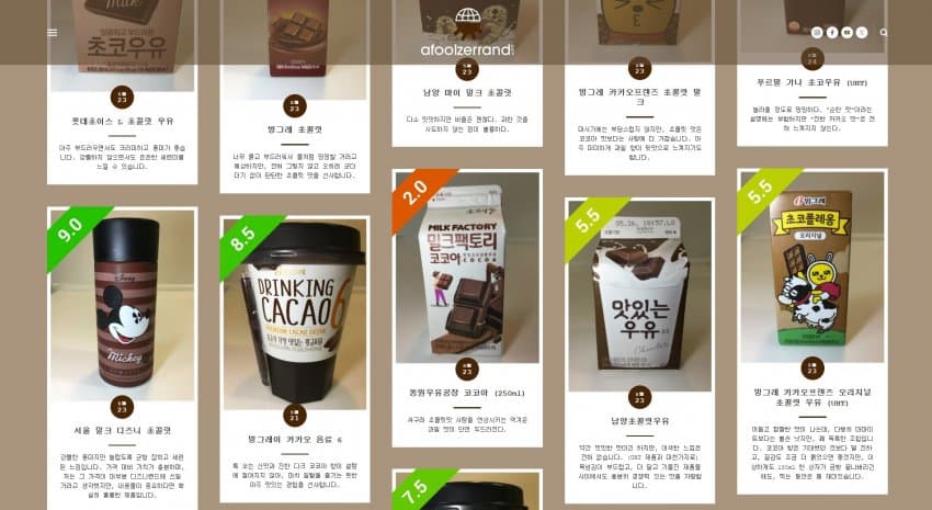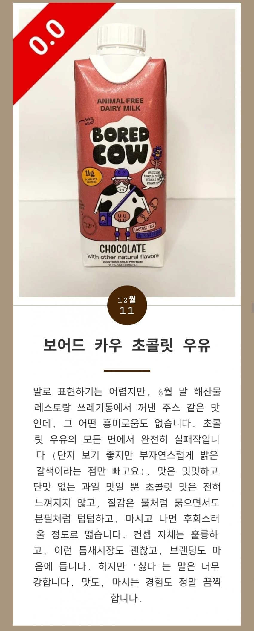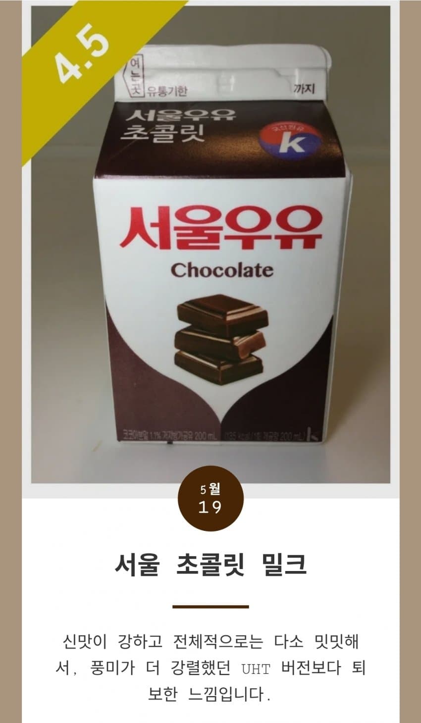격찬 받은 초코 우유 중 일부 (83개 제품이 9.5점 받음)