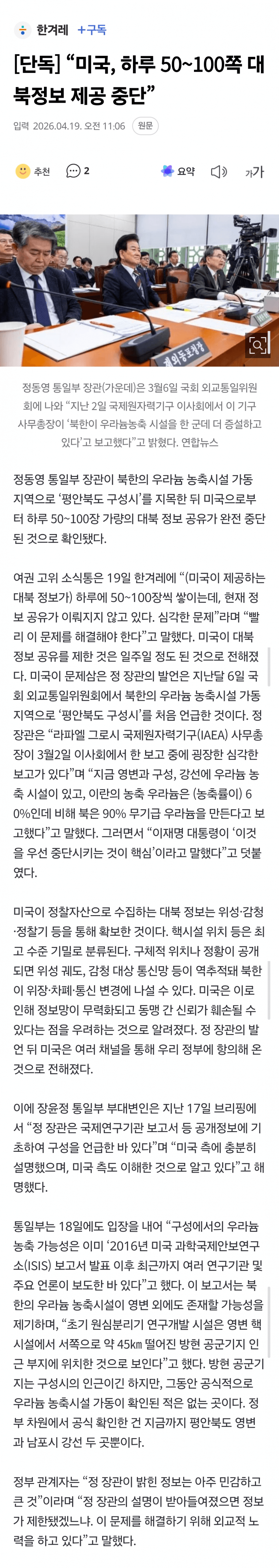 살다가 한계레가 미국 정보중단 지적 한 것 처음 보노. 김대중 이후 민주당정권 노무현 문재인때도 미국이 정보를 제한 한 적 있었도 정보제공 자체를 중단 한 것 처음 같은데