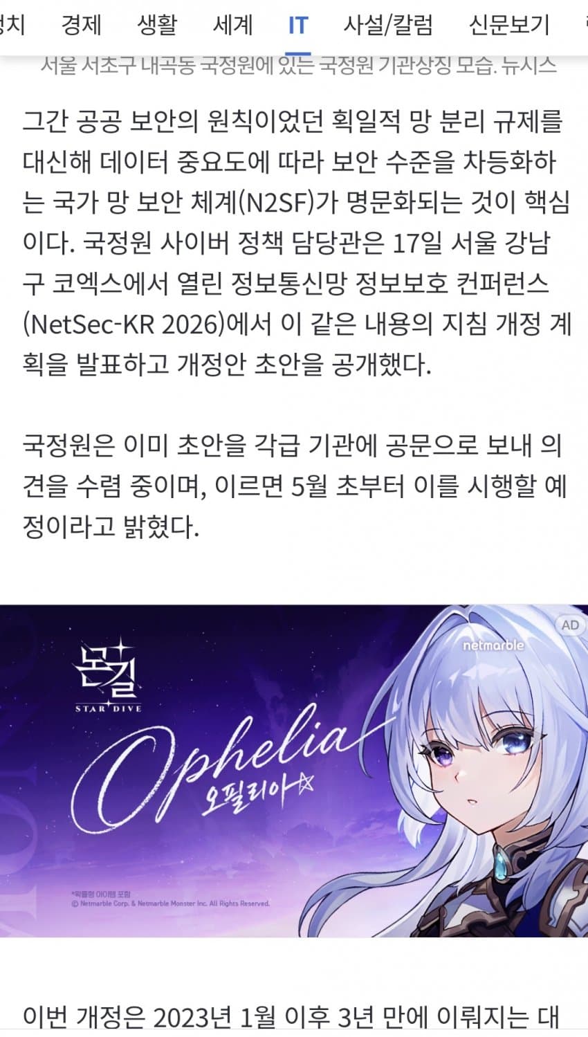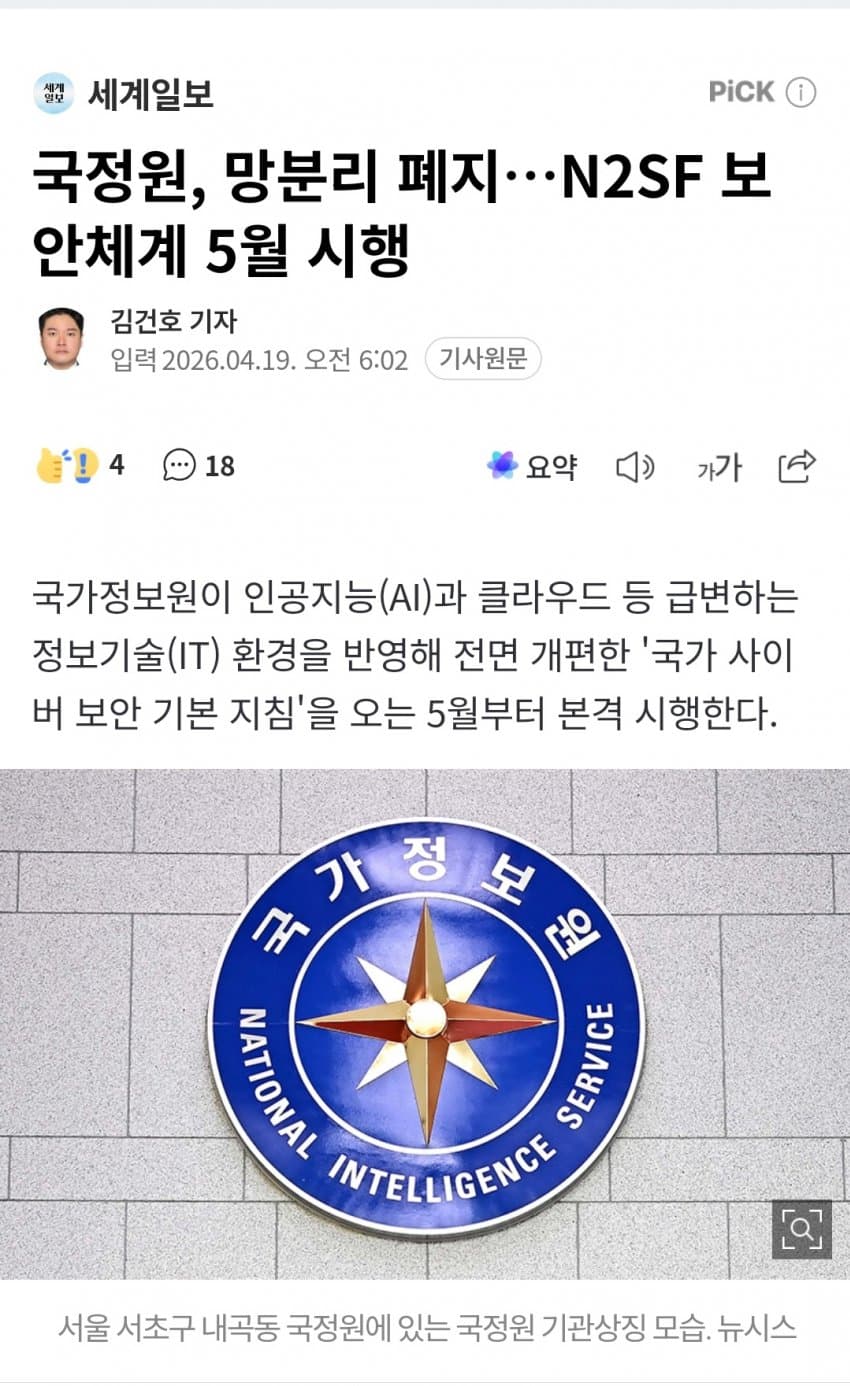 국정원 망분리 20년만에 폐지한다고ㅡㅡ?