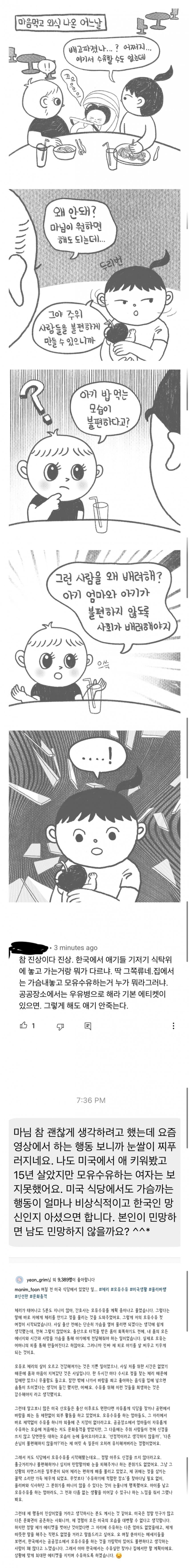 문제는 그 모유 수유하는거 눈길 가거나 그랫을 때그걸 본 사람이 처벌 받거나 그럴수 있는 공포가 사회 전반에 깔려있으니까 문제지
