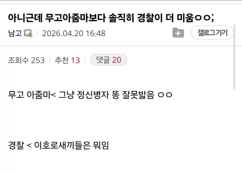 응 다른 지구대로 가면그만이야~~~견찰=남혐조직