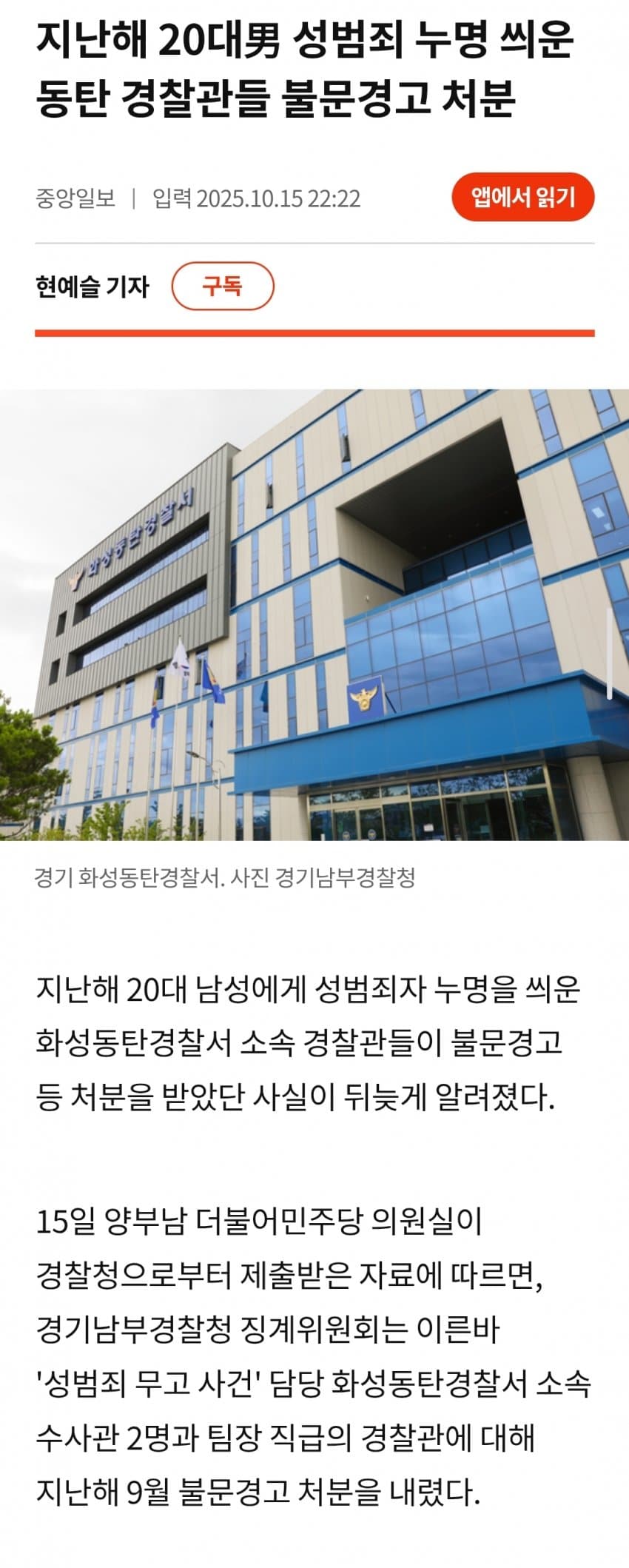 경찰관 불문경고는 징계위원회에서 징계 사유가 인정되지만 비위 정도가 경미해 '징계' 자체는 하지 않고(불문, 不問), 대신 엄중 경고를 내리는 행정처분.우리나라에 정의가 살아 있는지가 정말 의심스럽다. 한 사람을 성범죄자로 만들뻔 했는데 범죄자라고 거짓 고발 한 사람은 무고죄로 처벌 받고 그 무고 죄인의 말만 믿고 무고한 시민을 범법자로 만든 사람들은 처벌을 받지 않는다고? 이게 나라냐?