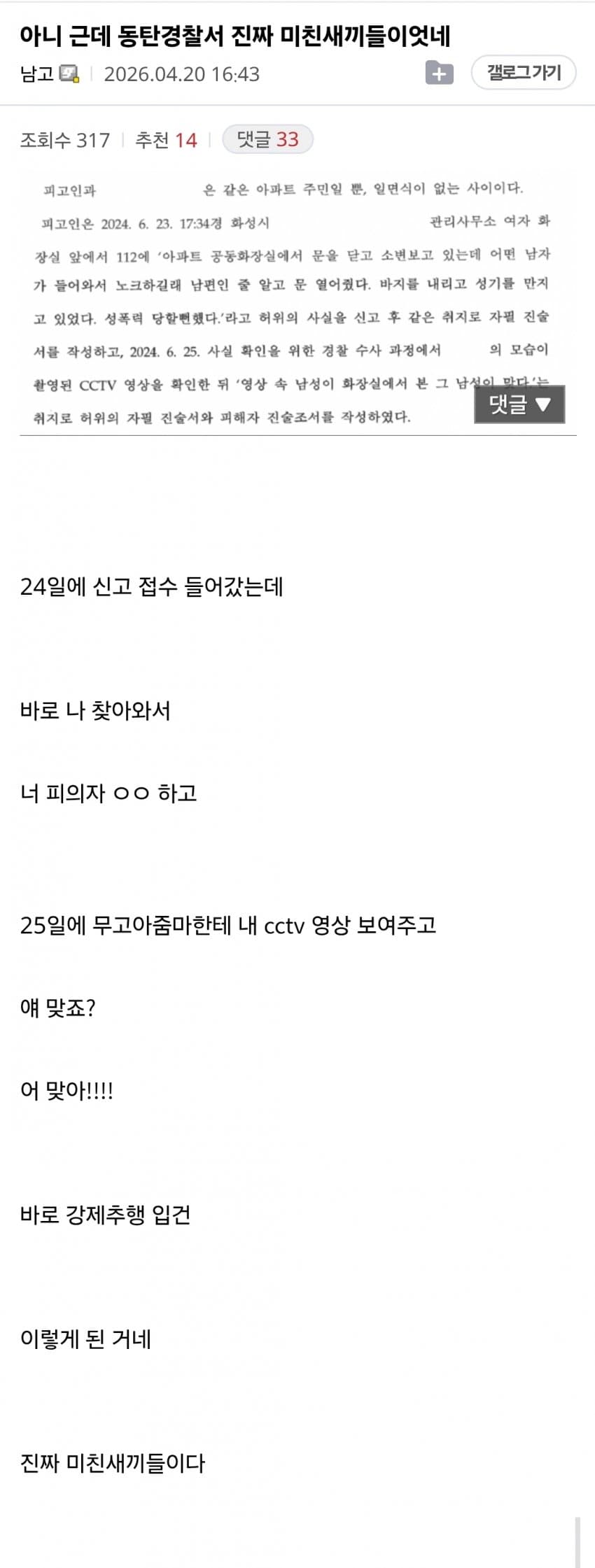 근데 곰곰히 생각해보면 경찰이 사람 죽여도 쏴리~ 하고 넘어갔던 동네인데 성범죄 무고쯤이야 뭐