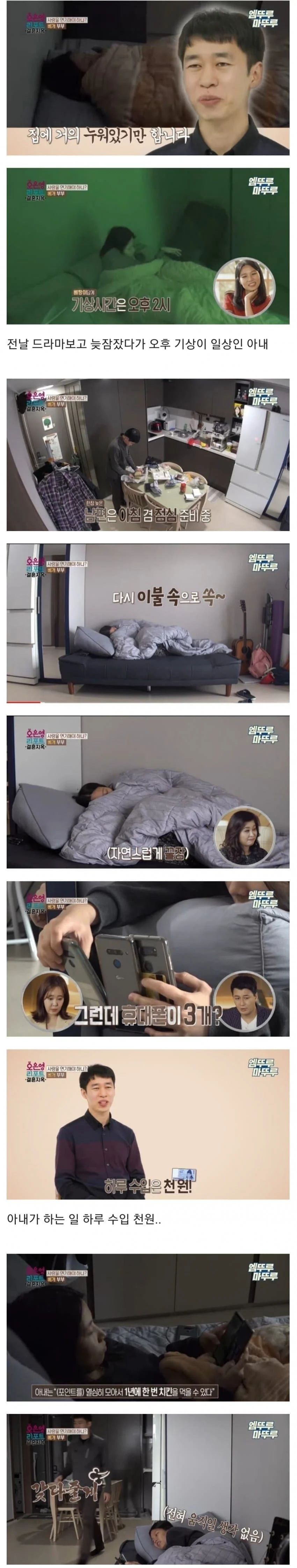 얼굴이 전국에 다 팔리는 걸 방송 대본대로 하라면 어느 미친년이 하겠냐고~ 몇푼 주지도 않는 출연료에 저럴리 없음.그냥 타고난 인간폐기물이 남편 하나 잘 물은거지