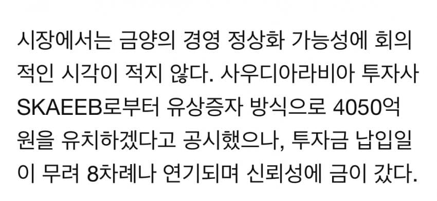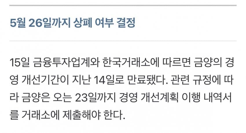 지금, 금양은 상장폐지 기로에 서 있다.