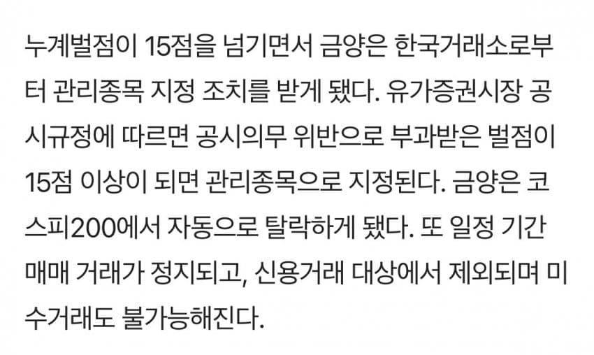 이로써 상장폐지사유가 발생,