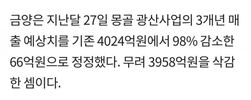 같은날, 몽골 광산의 매출예상치를 4024억원에서