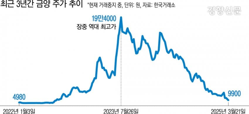 거래정지 당시 금양주가는 9900원......