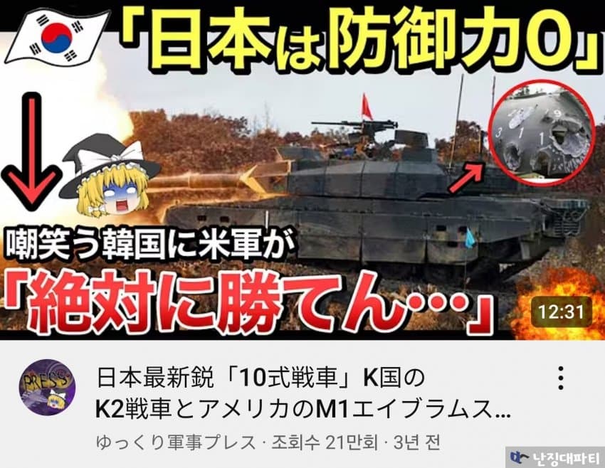 한국은 기술력이 부족하면 기준을 낮춰서 달성하지만 우리 닛뽄은 세카이 제일의 기술력으로 최강 전차를 만드므니다!