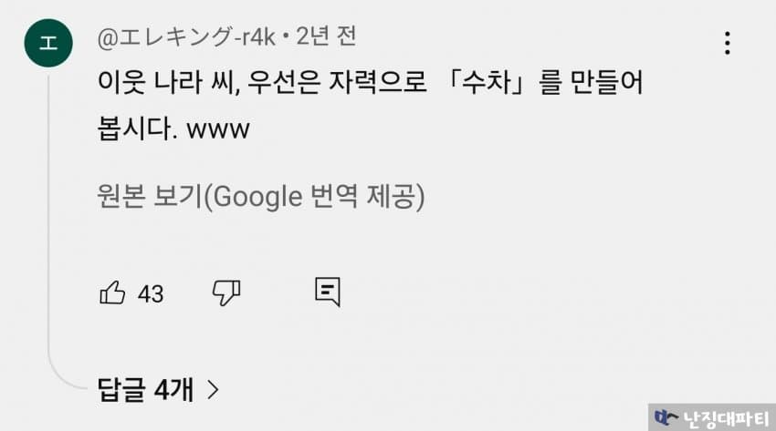 한국은 주제 넘게 전차를 만들려고 하지 말고 물레방아나 만들어라!