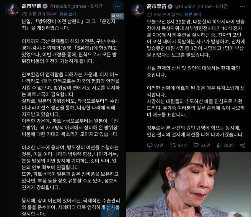 공교롭게도 수출을 허가한 날에 육상자위대 전차가 폭발하는 사고가 났음