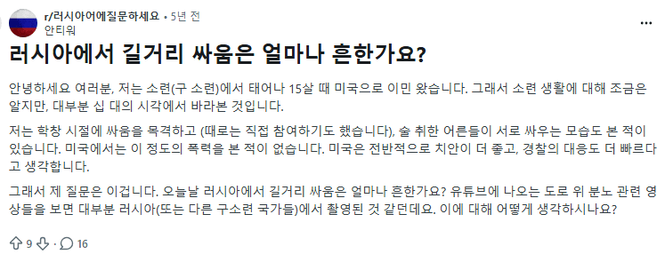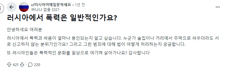 Q : 러시아에서는 주먹다짐 하고도 서로 신고 안한다는데 ㄹㅇ임?