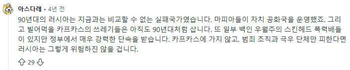 지금은 ㄱㅊ음, 근데 캅카스(체첸) 새끼들은 아직도 그러고 삼