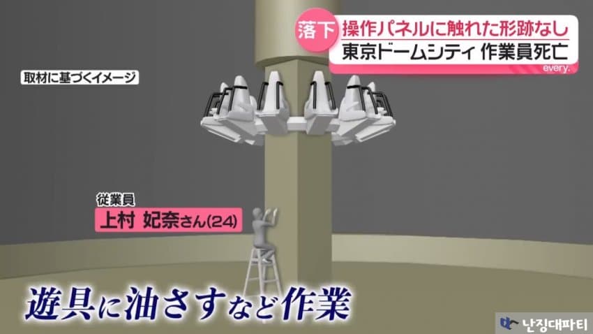 우에무라 히나(24)라는 여성 직원이 문제의 기구에 윤활유를 바르는 작업을 하고 있었는데