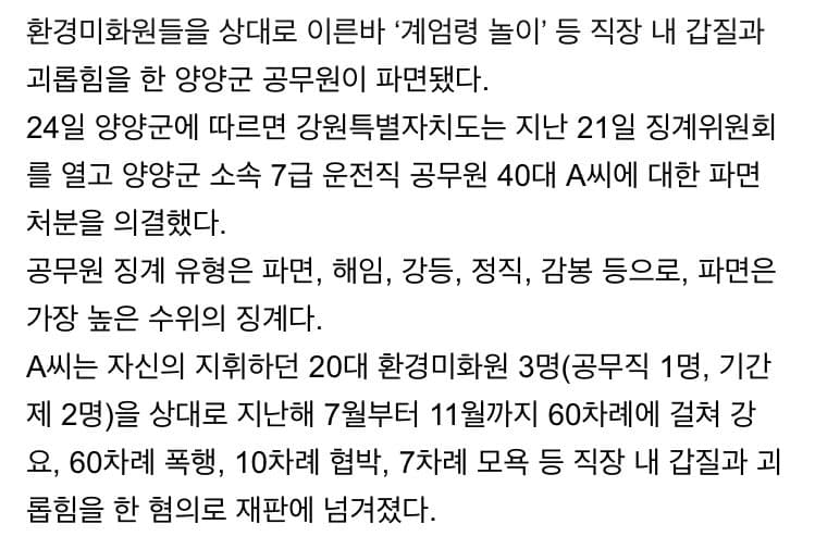 공무원도 급이 있는데 양양군이면 F급임 아무도 교류 안해주는곳 짤려도 타격없음