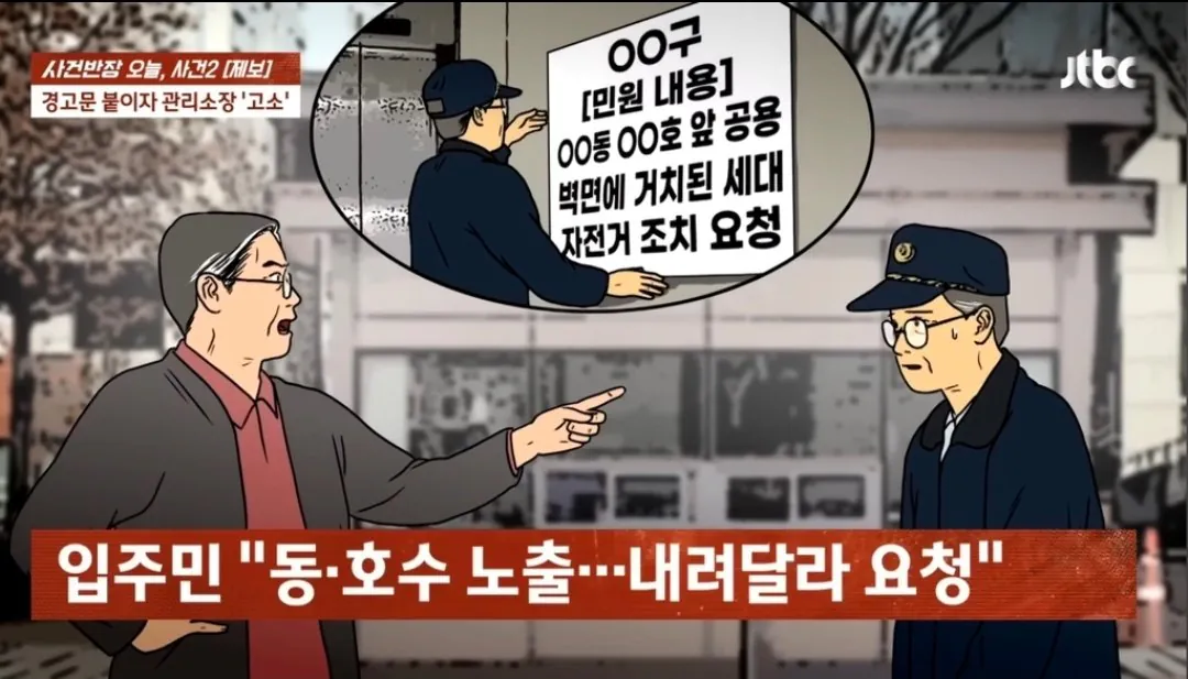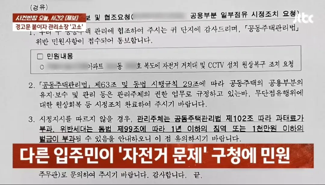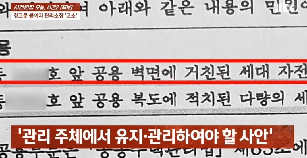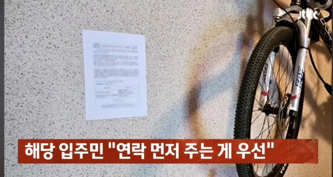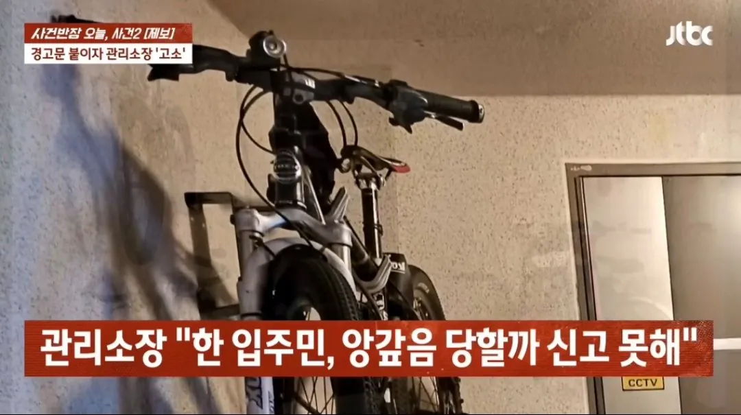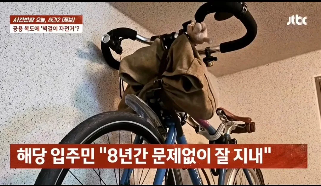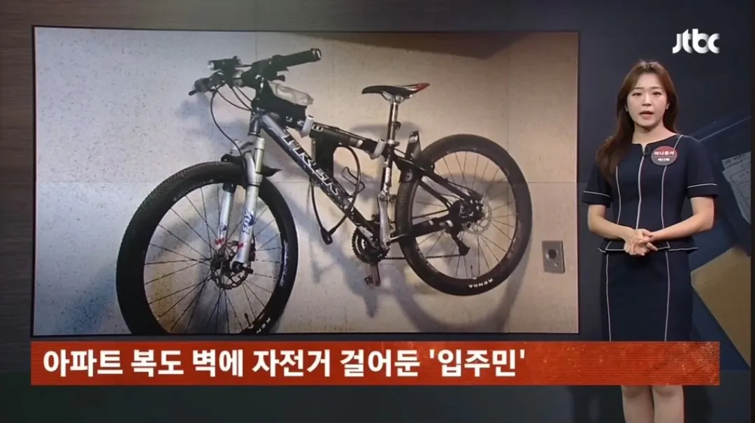 아파트 복도 벽 뚫어서 자전거 거치대 설치한 입주민