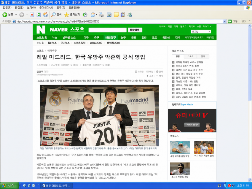 2009년 가상의 한국 축구 선수가 레알 마드리드 입단식을 진행하는 중