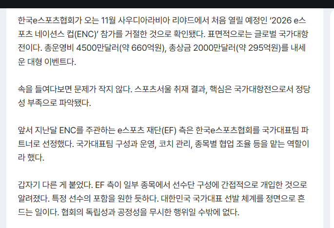 .명심해라.사우디가 주최하는 ENC보다 대한민국이 주도하는 IESF가 훨씬 전통있고 중요한 대회다.