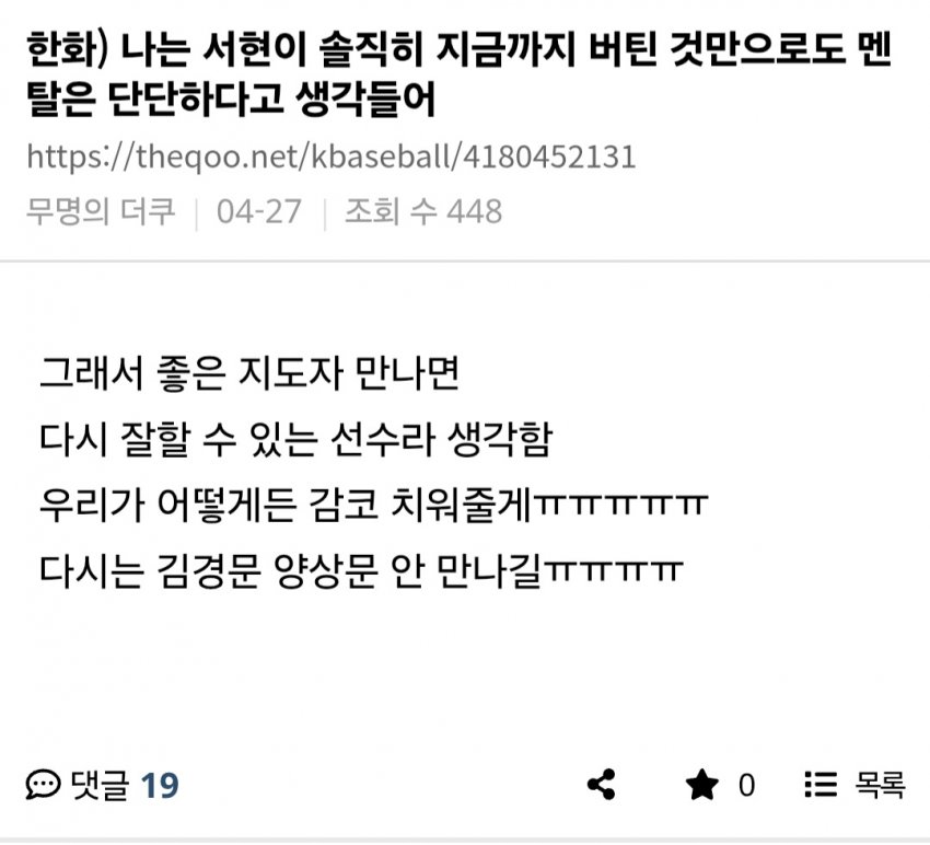 극혐할거 없다 쟤들 다 문동주 조동욱 빨고 김서현은 패션임