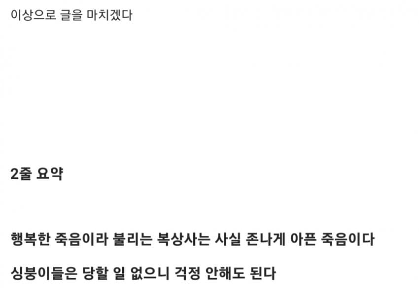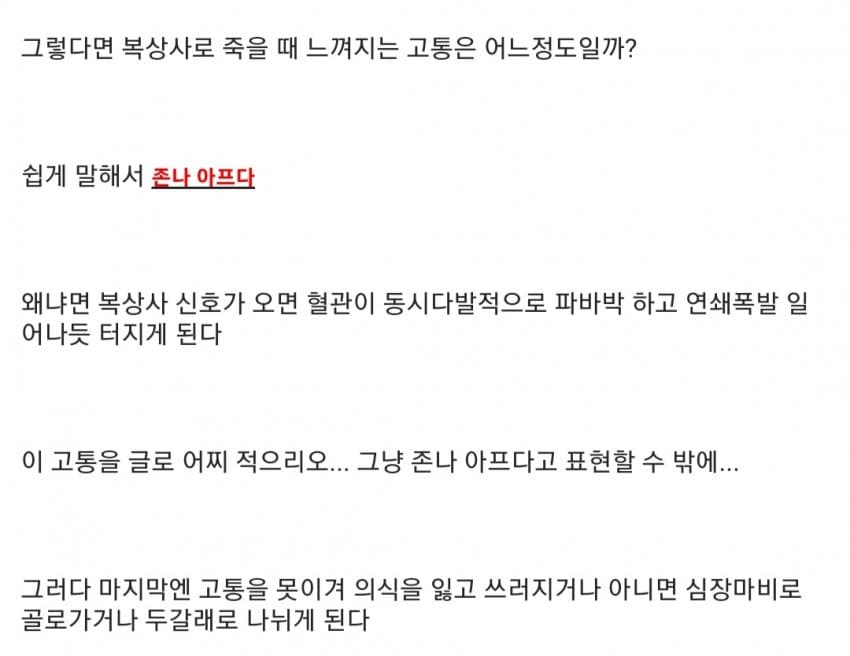 심장마비로 1분 내에 죽는 게 뭐가 고통스럽게 죽는 거냐 호상이지