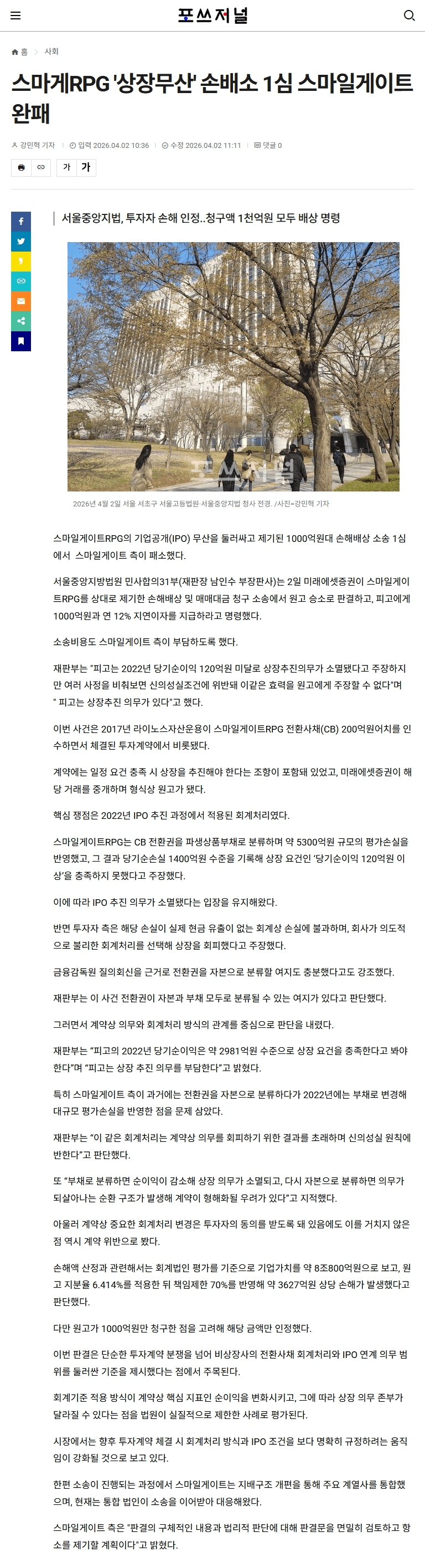 그 와중에 원고 상대로 3600억 손해봤는데 왜 1000억만 청구했냐 꼽줬네 ㅋㅋㅋ