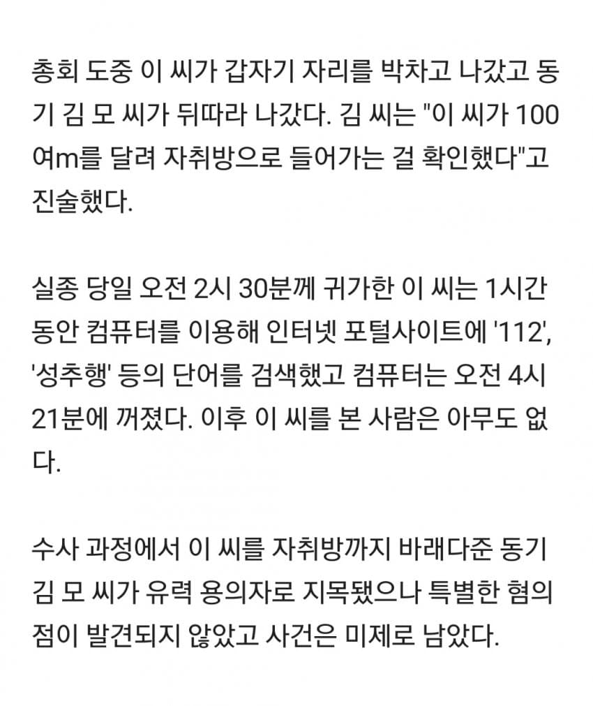 범인을 정해놓고 끼워맞추기식 수사 하다 조진거임 초기부터 걍 동기 한놈 스토커다 뭐다 하는식으로 몰아가다 말아먹음 ㅋㅋ