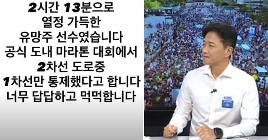 마라톤 해설위원으로도 활동하는 배우 진태현도 이 소식 듣고 “유망주 선수였는데 먹먹하다”면서 엄청 안타까워했어. 이 사고 때문에 남은 마라톤 대회 일정은 전부 취소됐다고 해. 진짜 이런 비극적인 일은 다시는 없어야 할 텐데, 너무 마음이 아프다. 고인의 명복을 빌어.