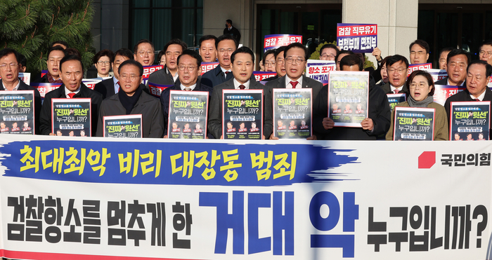 국민의힘이 대검찰청 앞에서 으쌰으쌰 시위를 벌였지 뭐야. 대장동 비리 사건 항소 포기한 거 가지고 완전 뿔난 거지. “이거 완전 대통령실 외압 아니냐?”면서 국정조사, 특검까지 외치더라.