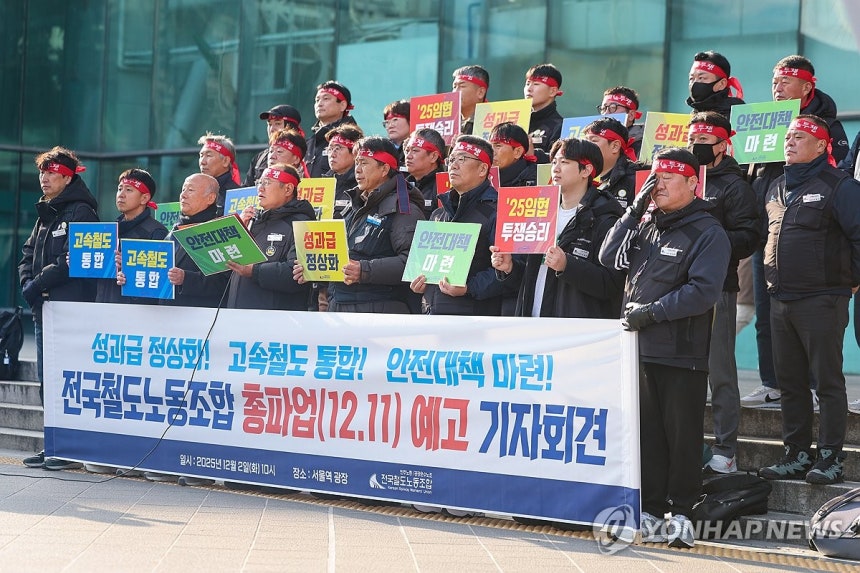 이거 진짜 큰일 났어. 철도노조 형님들이 말이야, 12월 11일부터 열차 싹 다 멈춘대! 왜냐고? 성과급 제대로 안 주고, 고속철도도 합쳐달라는데 말 안 들어주면 그냥 다 멈춰버리겠다는 거야. 안전 대책도 마련해달라고 하는데, 이거 진짜 빡친 듯.