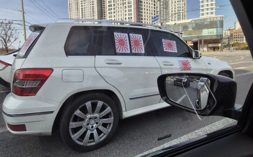 김포에서 또 욱일기 벤츠가 나타났대. 진짜 어이없지 않냐? 온라인 커뮤니티에 사진 올라왔는데, 흰색 벤츠 SUV에 욱일기가 덕지덕지 붙어있었대. 김포 시내 한복판을 그렇게 돌아다녔다니… 이거 실화냐?