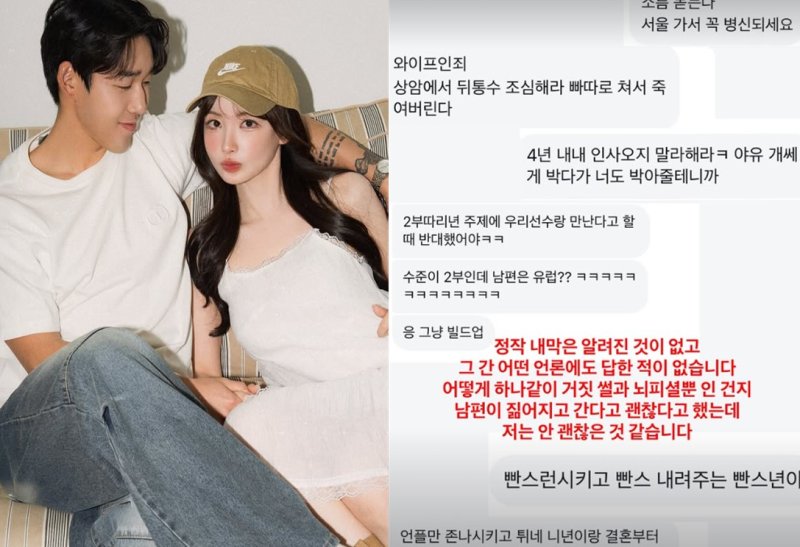 곽민선은 결국 참다못해 SNS에 직접 받은 메시지들을 박제하면서 고통을 호소했어. 사실 이번 이적 건에 대해서 내막이 제대로 알려진 것도 없고, 본인은 언론에 어떤 대답도 한 적이 없거든. 그냥 인터넷 커뮤니티에 떠도는 뇌피셜이랑 근거 없는 추측들만 보고 와이프라는 이유 하나만으로 무차별 테러를 당하고 있는 억울한 상황이지. 남편인 송민규는 자기가 비난 다 감당하면 된다며 괜찮다고 했다지만, 아내 입장에서는 이게 절대로 괜찮을 리가 없잖아. 멘탈이 실시간으로 바스라지는 게 당연하지.