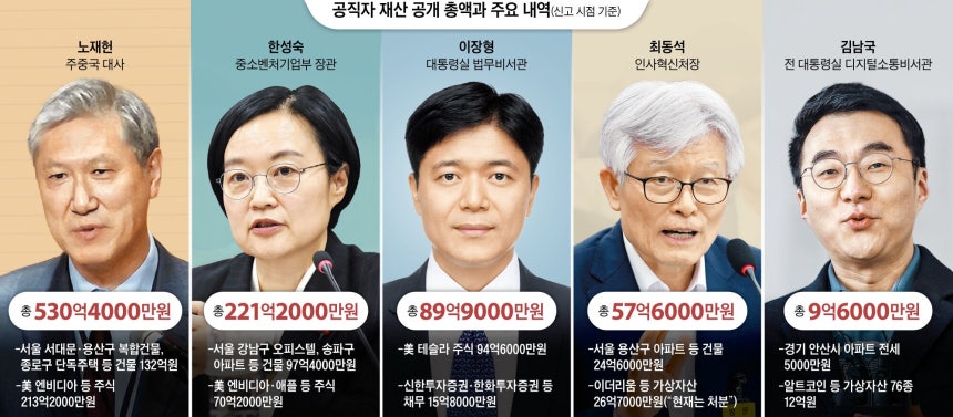 공직자 재산 공개된 거 보니까 여긴 그냥 자본주의의 정수 그 자체야. 노태우 전 대통령 아들 노재헌이 530억으로 1위 찍었는데 주식 포트폴리오가 거의 나스닥 인덱스 펀드 수준이더라고. 엔비디아만 1만 7천 주 넘게 들고 있고 마소랑 중국 ETF까지 낭낭하게 챙겼어. 갓비디아 주가 오르는 거 보면 자다가도 웃음이 나올 텐데 장남 명의로도 주식이 수십억이라니 이게 진정한 금수저의 삶인가 싶어.