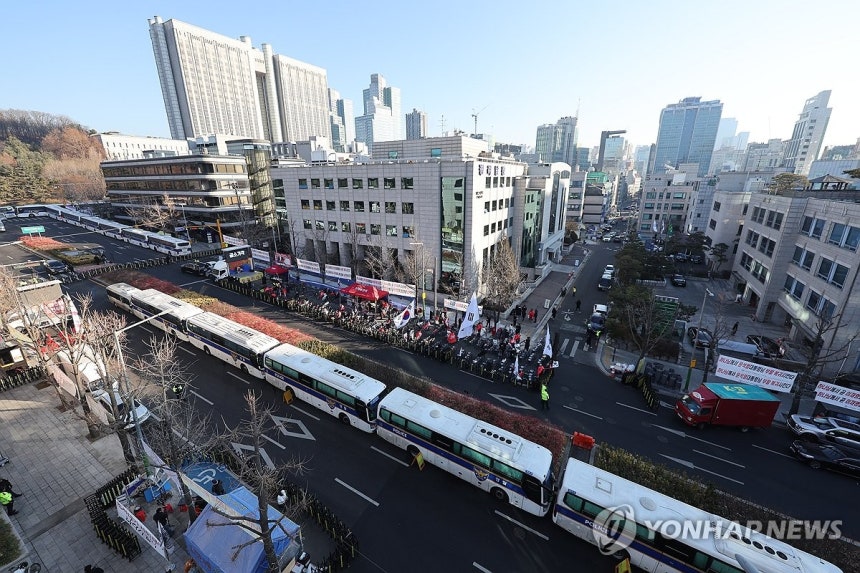 드디어 그날이 왔음. 내란 혐의로 재판 넘겨진 윤석열 전 대통령 1심 선고날이라 법원 앞이 아주 활활 타오르는 중임. 경찰은 혹시라도 사고 터질까 봐 차벽 세우고 완전 철통 보안 모드 들어갔고, 서초동 분위기는 말 그대로 긴장감 맥스 찍었음.